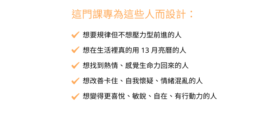 我們把 13 月亮曆活進生活, 協助你活得更喜悅、敏銳、有力量。